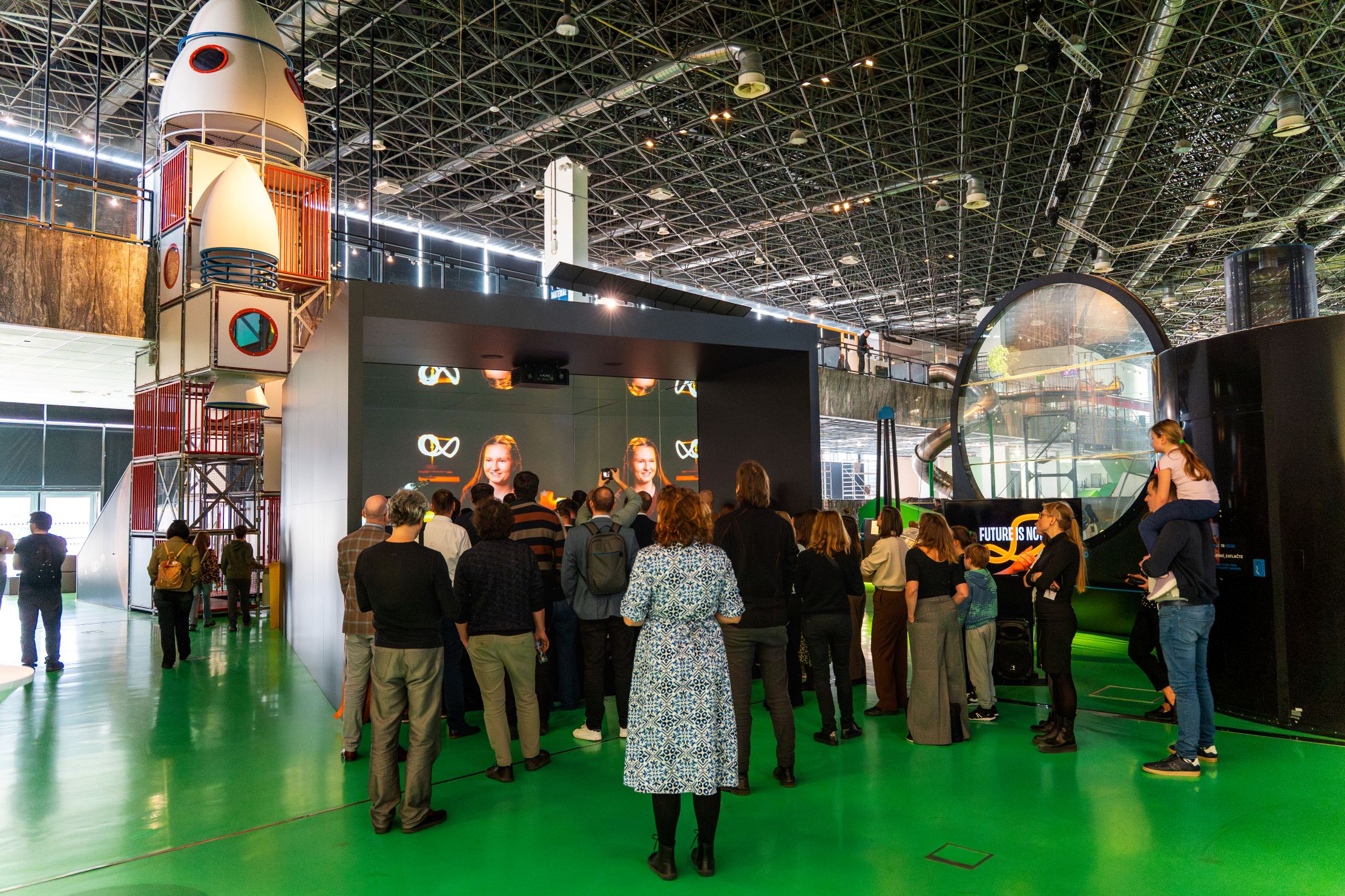 Prostorem návštěvníky provází digitální průvodkyně a AI influencerka STEMA, která jednotlivé příběhy propojuje a zasazuje je do širšího kontextu současné vědy